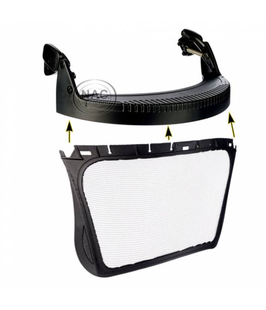 Mesh visor helps protect from flying debris and particles