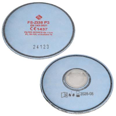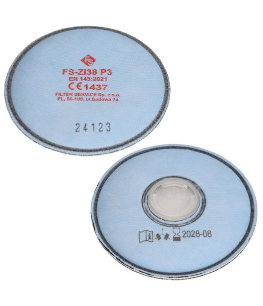 The FS-ZI38 P3 R filters, thanks to the absorption layer containing active carbon, are designed for respiratory system protection against organic vapours below OEL levels.