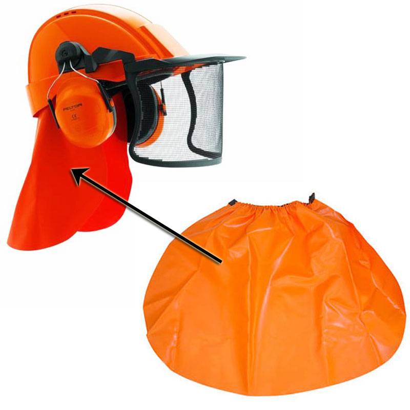 Protección para el cuello Peltor GR3C recubierto de material plástico, protege la zona del cuello de la lluvia y de las astillas. Se fija rápida y fácilmente al interior.
