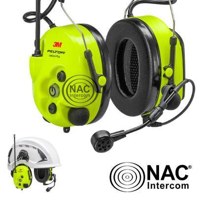 Protector auditivo con walkie PMR446 integrado y escucha del entorno. Comunicación con otros LiteCom u otras radios PMR446. Alta Visibilidad.