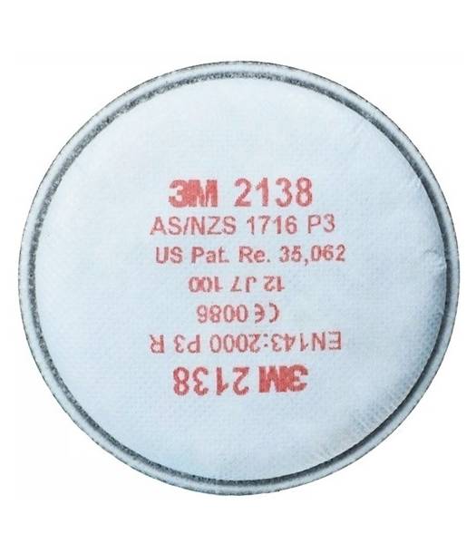 Los Filtros de partículas 3M™ 2138 protegen contra partículas sólidas y líquidas P3R, con protección adicional frente a gases y vapores orgánicos y ácidos, Ozono hasta 10 veces el valor umbral límite (TLV), o vapores orgánicos o gases ácidos por debajo del límite de exposición laboral (OEL).