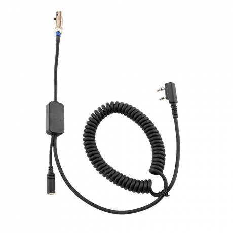 Spiral cable with CB01 connector (double jack mono 2.5 mm. & 3.5 mm.). Recommended for walkies with connection at the top side. To connect our electronics...