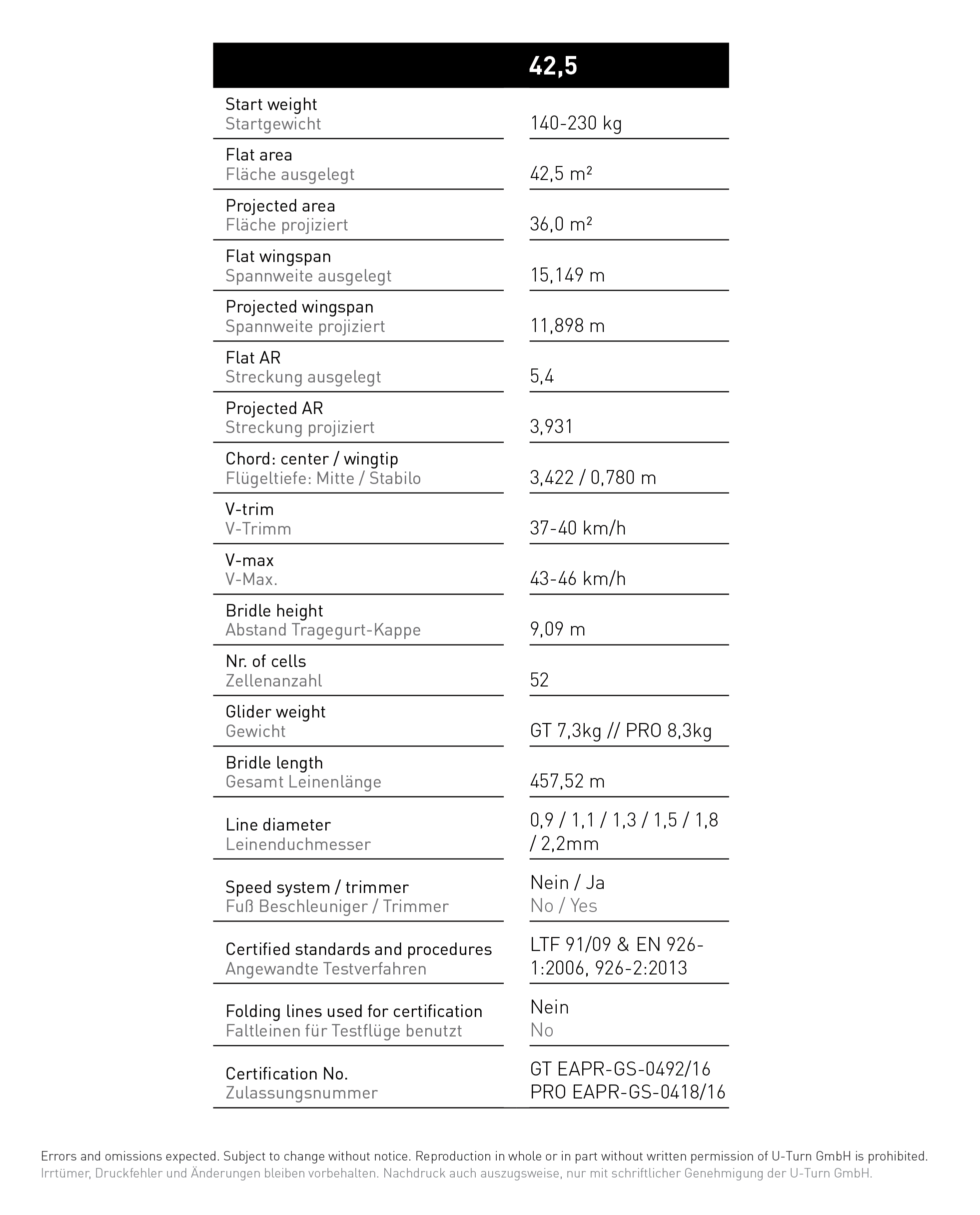 Low weight of the canopy with high durability – that is what the intelligent material mix and the high quality processing of the new PASSENGER 2 promises. The top materials Dokdo 30 and Dokdo 20 are providing a low weight at high abrasion resistance. At the PRO version the specifically developed PX40 material from the acro area is used. The extreme resistance to abrasion and tearing is especially noticeable during the return on investment of professional tandem companies. The PASSENGER 2 is covering a high weight range for a start weight from 140 kg up to 230 kg for one and two seated flying. The PASSENGER 2 is available in the versions GT and PRO. Both versions have the LTF/EN B certification.