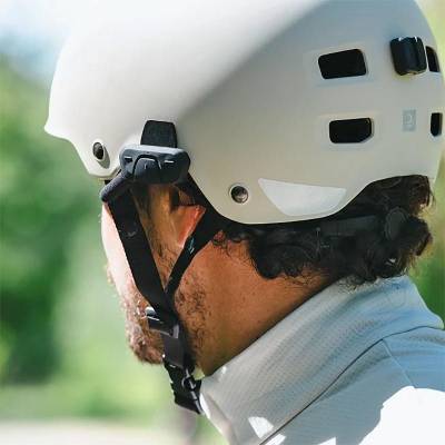 Gracias a sus 2 soportes autoadhesivos, ROAMEE se puede colocar en cualquier casco en cuestión de segundos. El ROAMEE puede ser cambiado rápidamente de un casco a otro gracias a sus potentes soportes magnéticos.